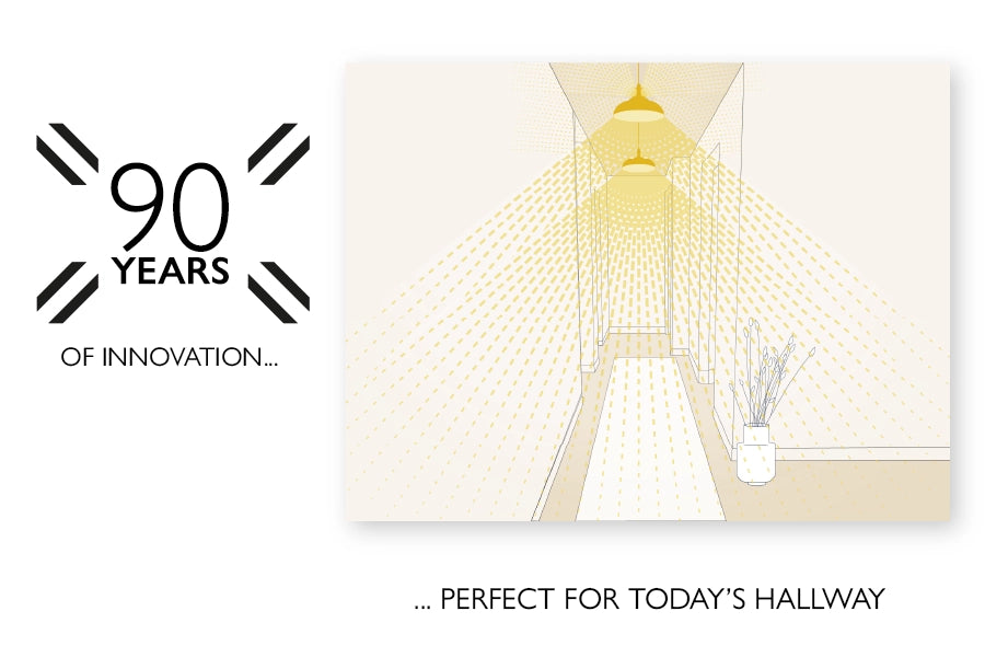 Avec leur éclairage bidirectionnel, qui projette la lumière vers le haut et vers le bas, les abat-jour Coolicon sont particulièrement adaptés à l'éclairage d'un couloir d'entrée. Conçus à l'origine pour favoriser la dissipation de la chaleur des ampoules des années 1930, les évents ouverts de la galerie permettent désormais à l'éclairage ambiant d'atteindre le plafond tandis que l'émail blanc réfléchissant à l'intérieur de l'abat-jour émet une lumière claire et vive en dessous - idéal pour garder le couloir exempt de tout encombrement d'éclairage supplémentaire.