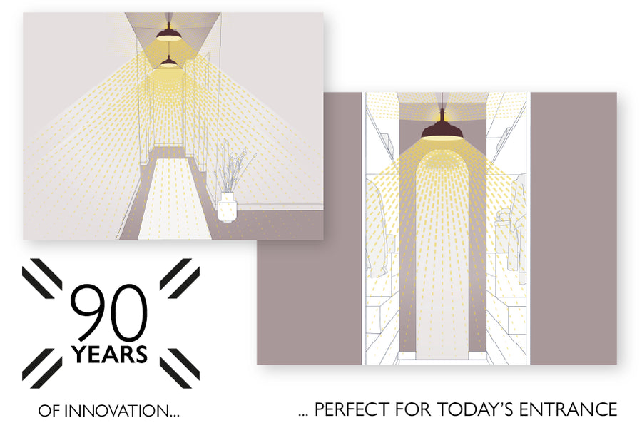 En accrochant une série d'abat-jour Coolicon dans une entrée ou un couloir, vous évitez aux murs et aux sols d'être éclairés par un éclairage supplémentaire, ce qui libère de l'espace pour les portemanteaux et les porte-chaussures. Les abat-jours originaux 1933™ Design peuvent constituer un ajout étonnant lorsqu'ils sont regroupés dans une entrée. Pour les grandes entrées et les couloirs, nous recommandons l'abat-jour Large 1933™ Design. Ses cônes lumineux plus grands permettent une plus grande projection de lumière dans les espaces ouverts, remplissant la pièce de chaleur et de bienvenue.