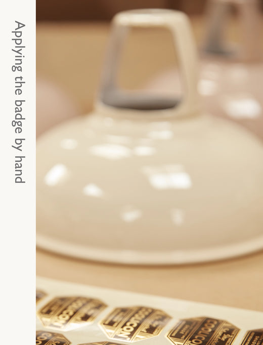 La touche finale, le badge doré Coolicon, fait de votre abat-jour un abat-jour Coolicon. Utilisés sur les abat-jour Coolicon depuis 1933, les badges sont alignés à l'œil nu et appliqués à la main comme ils l'étaient il y a des générations. Chaque badge présente fièrement ses plis uniques ; des marques authentiques créées par la courbe de l'abat-jour tandis que le badge imite sa forme. Nos abat-jour Coolicon plus grands sont peut-être un nouvel ajout à la famille Coolicon, mais le badge qu'ils arborent fièrement est fidèle à la taille et à la forme originales de ses tout premiers prédécesseurs.