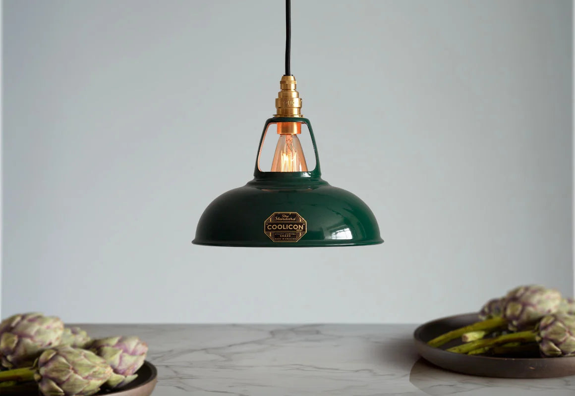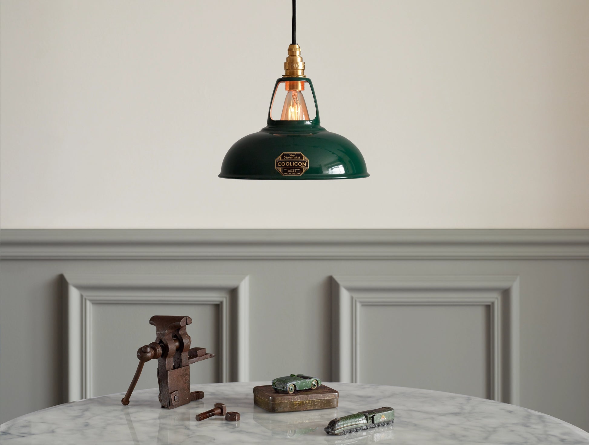 Conçue à l'origine pour éclairer les usines britanniques des années 1930, notre vaste palette de couleurs fait entrer l'abat-jour Original 1933™ Design dans le 21e siècle. Instantanément reconnaissable comme la couleur des jours d'or du sport automobile britannique, Original Green est un hommage approprié aux jours heureux de Jaguar et Lotus. Les émeraudes sombres et le lierre se mêlent aux verts forêt profonds, le résultat est une teinte affirmée qui semble familière et accueillante .