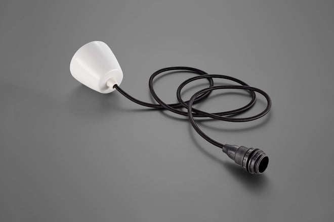 Suspensions de lampe industrielles - Ces douilles de lampe modernes en plastique noir rendent hommage aux douilles de lampe traditionnelles en bakélite noire du passé industriel de Coolicon.