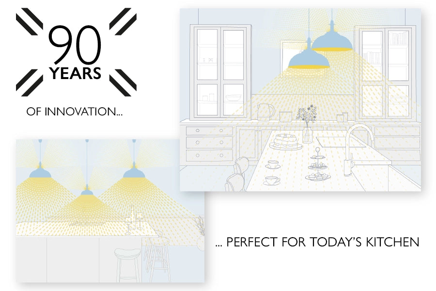 On pourrait dire que la lampe Coolicon a été conçue spécialement pour la cuisine. Facile à nettoyer, résistant à la vapeur et au feu, il s'agit du choix évident pour un éclairage de cuisine élégant et fonctionnel. De plus, nos abat-jour en émail vitrifié sont résistants à la décoloration, ce qui est parfait pour les cuisines orientées au sud.