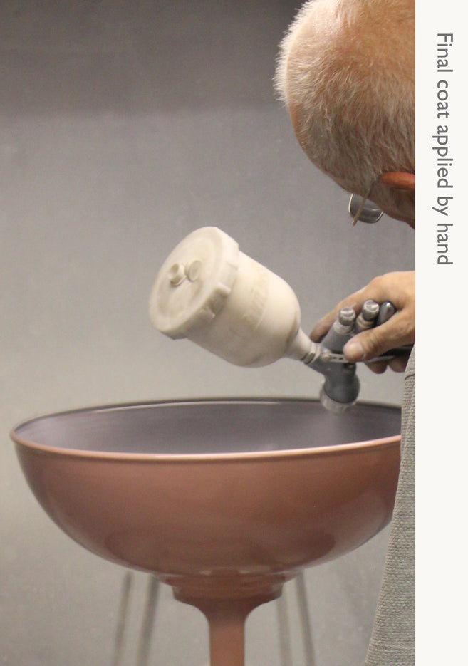 Born in the furnaces of industrial Britain and now reproduced by artisans in the UK’s few remaining dedicated workshops, every detailed touch point on a Coolicon lampshade is formed by hand. The lip return around the rim of the shade, the curve at the very top of the gallery and the smooth weld finishes cannot be created by tools or machines. Our craftspeople, masters of their trade, carefully finish the lampshade construction by hand.