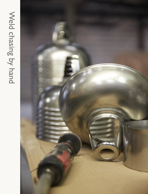 Our lampshades are constructed of a high-grade steel to ensure longevity and the finest quality finish. The main body of our lampshades, the reflector, is spun, pressed, and formed by hand. Once perfectly rounded the reflector is welded to the vented gallery, completing the construction of the 1933™ Design lampshade.