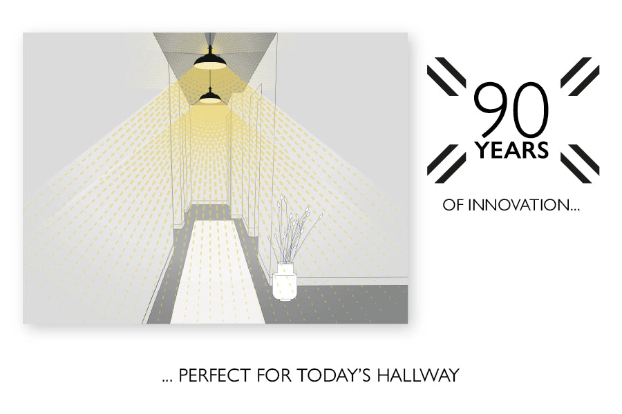 Our larger model of the 1933™ Design lampshade shapes light in a slightly different way, making it a perfect choice when lighting larger spaces like entranceways or open plan living areas. With the bulb sitting higher in the vented gallery, a greater ambient lighting shines through the distinctive vents reaching further into the room. The task light emitted below is softer due to the larger reflective dome, ideal for over larger surfaces or gathering spaces.