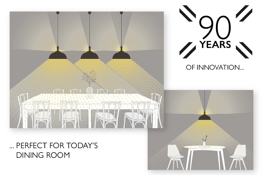 Lampshades that light above and below, brightening open plan dining areas with ease
