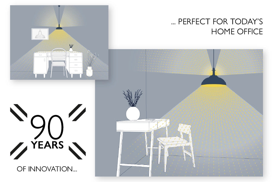 Lighting can completely transform a space — not just by brightening dark corners, but by affecting your emotions. Light enlivens the little things — our morning routines, or the quiet moments we spend with a cup of tea. Hanging a Large 1933™ Design shade in the centre of a study, with smaller accent lighting to highlight your favourite piece of art, will create a brighter, more vibrant and in turn more productive working space as the light reaches all corners of the room.